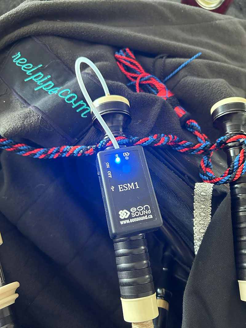 The ESM1 electronic bagpipe manometer masures the bag pressure electronically and sends the data wirelessly to your smartphone or tablet. You are no longer tethered to a water system or have to squint at small dial gauges.